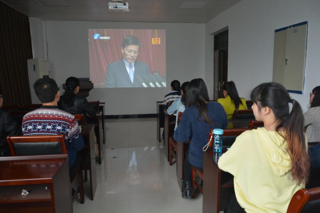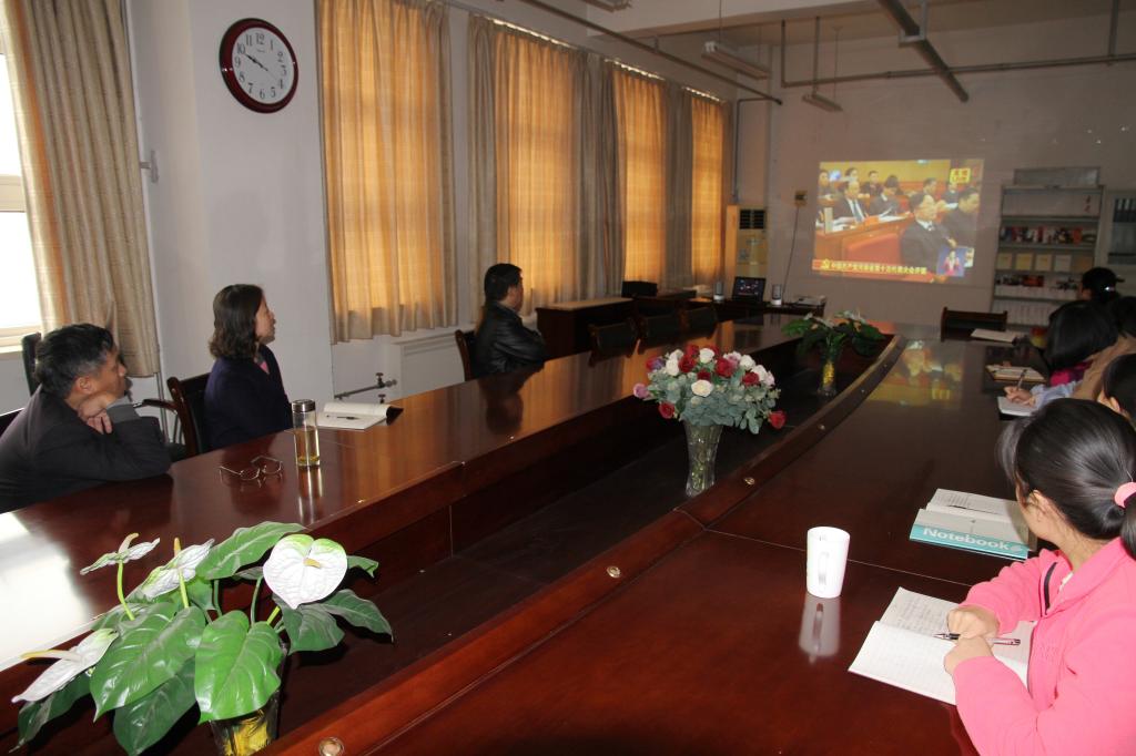 校党委副书记马超和党群机关党总支、行政机关党总支机关的全体党员在办公楼第三会议室一同收看了开幕式,各基层党委、党总支、直属党支部组织广大党员通过电视、网络收听收看了开幕式直播实况。不少学生通过手机收看了大会开幕式直播,也有学生自发聚集在宿舍,通过电脑集体收看开幕式。