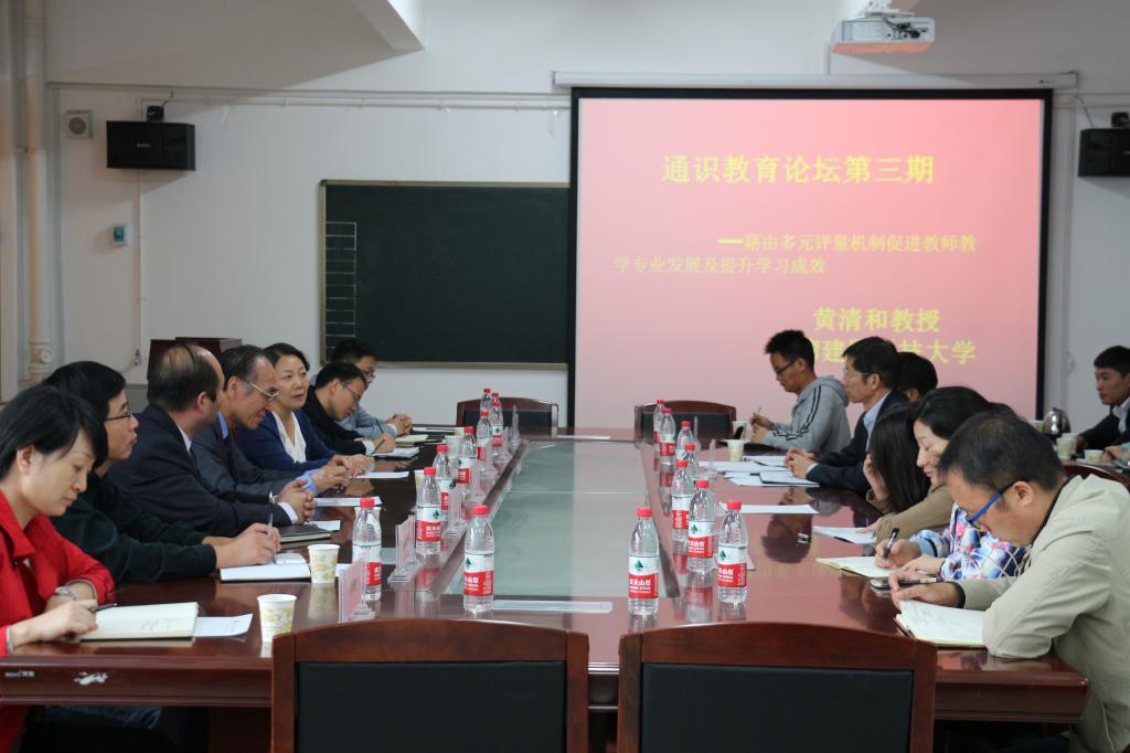 10月10日,bet36体育在线在土木工程学院会议室举办第三期通识教育论坛。本次论坛特别邀请台湾建国科技大学副校长黄清和教授作了《藉由多元评量机制促进教师教学专业发展及提升学生学习成效》的专题报告。副院长黄怡俐出席论坛,来自土木工程学院、电气(机电)工程学院、城乡规划与园林学院的教师代表50余人参加了论坛。论坛由土木工程学院院长高均昭主持。
