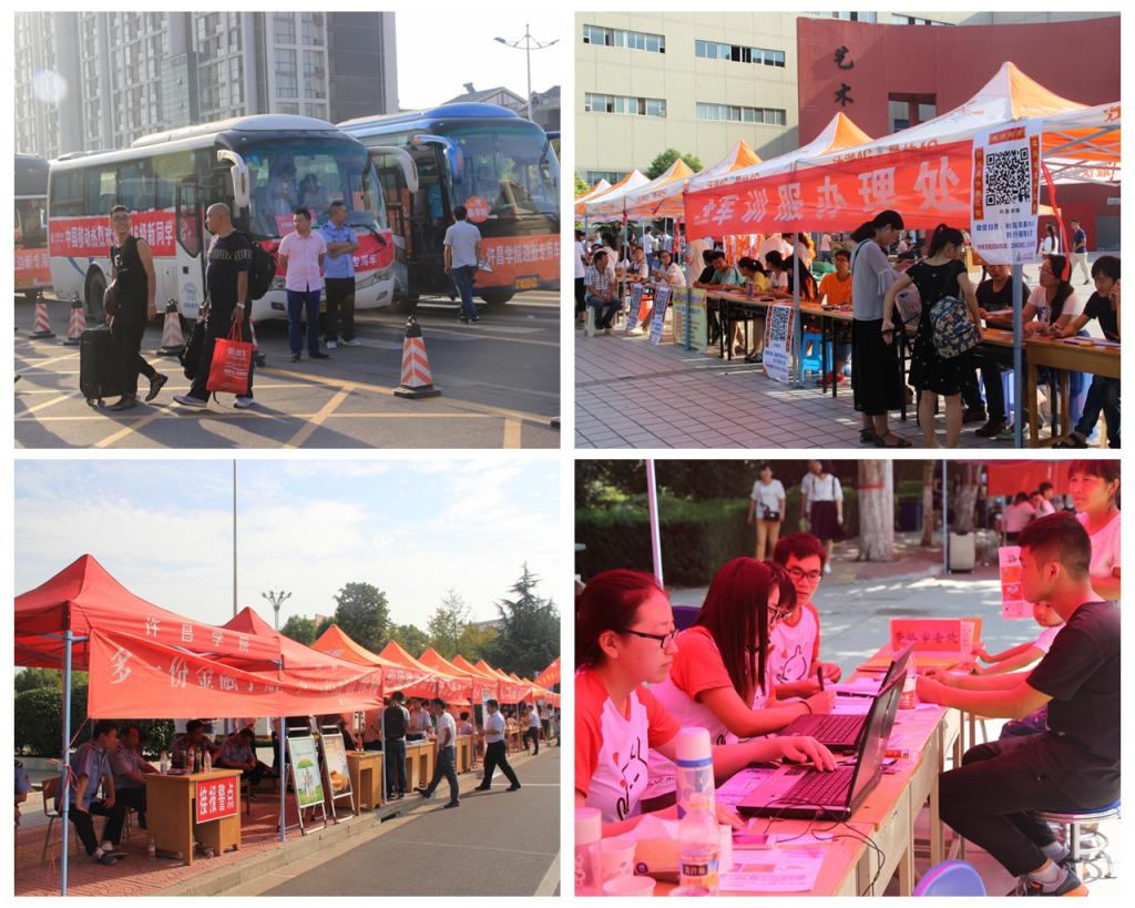 从7号开始,在火车站,高铁站和两个校区报到现场,各院部的领导、老师、志愿者及各部门工作人员就提前开始值班,随时准备接待新生和家长。