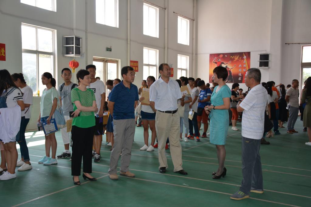 校领导不时地与来校报到的新生和家长亲切交谈,仔细询问新生的籍贯、专业、家庭情况、报到手续等情况。同时鼓励新同学在校期间要努力学习,尽快融入大学生活。