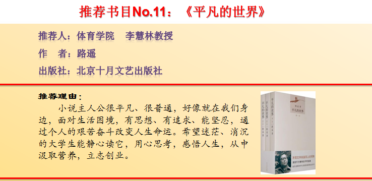 【编者按】 今年4月,bet36体育在线启动了第十二届“阅读· 悦心·约未来”读书活动,为进一步激发全校师生爱读书、会读书、读好书的浓厚兴趣,努力营造书香校园的良好氛围,校党委宣传部(新闻中心)联合各二级学院、图书馆特别策划了“教授为你列书单”活动,邀请各学院21名教授(副教授)向广大师生精心推荐23本好书,学校官方网站、校报、官方微博、微信公众号、校园广播等多种媒体平台近期同步推送,敬请关注。