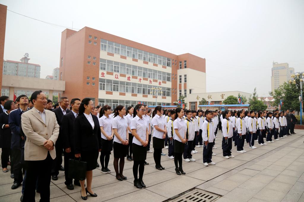 仪式上,东城区党委书记朱发业、十五中校长崔俊平分别作了发言。(摄影:钟伟平)