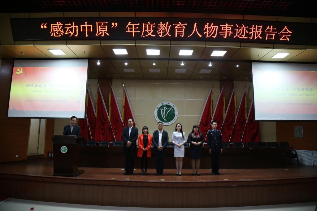 党委副书记马超在总结讲话中指出,“感动中原”年度教育人物是我们身边做人修身的榜样,是自觉培育和践行社会主义核心价值观的杰出代表,是推进校园道德风尚建设、加强和改进大学生思想政治工作最有说服力、影响力的生动教材。全校师生要努力学习他们的先进事迹和崇高品质,不断掀起宣传学习教育活动新热潮。要以先进典型为榜样,在开拓人生、奉献社会的进程中,把社会主义核心价值观内化于心、外化于行,汇聚起实现中华民族伟大复兴中国梦的强大正能量,努力成为可堪大用、能负重担的栋梁之材!
