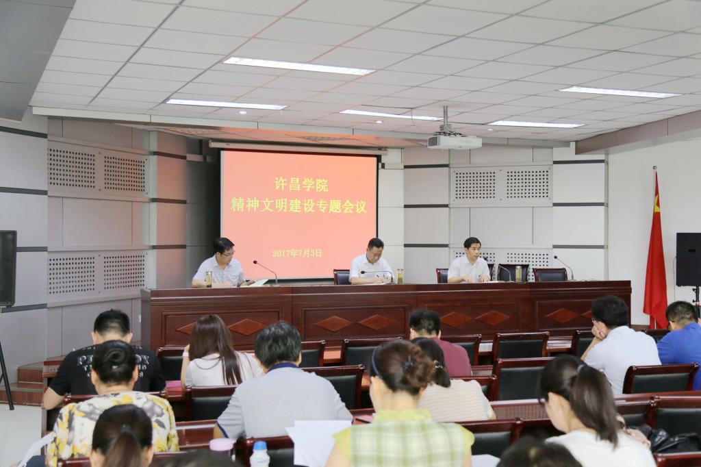 7月3日,bet36体育在线在办公楼第三会议室召开了精神文明建设专题会议。校党委副书记孙海、相关职能部门负责人、各二级学院负责精神文明创建工作的领导老师以及校精神文明建设指导委员会办公室全体成员参加了会议。会议由校党委宣传部部长、校文明办主任冯晓民主持。