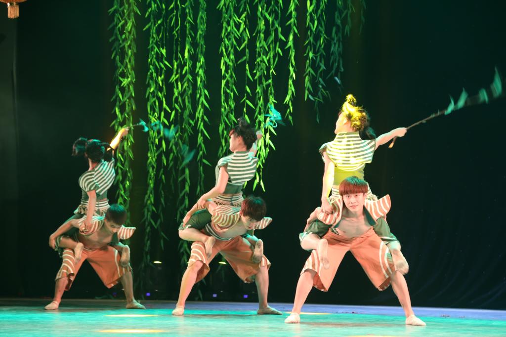 演出中,悦耳的霸王鞭、俏皮的颠花挑、豪气的大碗酒、喜庆的扭秧歌等极富中原民间乡味的舞姿让在场师生大饱眼福。模拟农民春耕场景,寄托人们“人强牛壮,丰收在望”的《打春牛》在表现农民兄弟质朴的品格,勤劳的本色的同时,也体现了他们对于生活的热爱;以河南著名民歌《编花篮》为蓝本创作的舞蹈《摘棉花》表现了一群妙龄少女活泼欢乐的劳动场景,轻盈灵动的舞姿,别具匠心的服装道具让人过目不忘;压轴舞蹈《抬花轿》将国家级非物质文化遗产“高抬火轿”和河南秧歌融合在一起,展现了河南秧歌特有的“大脚踩,大手甩”的特征以及独有的执扇方式和脚下律动。