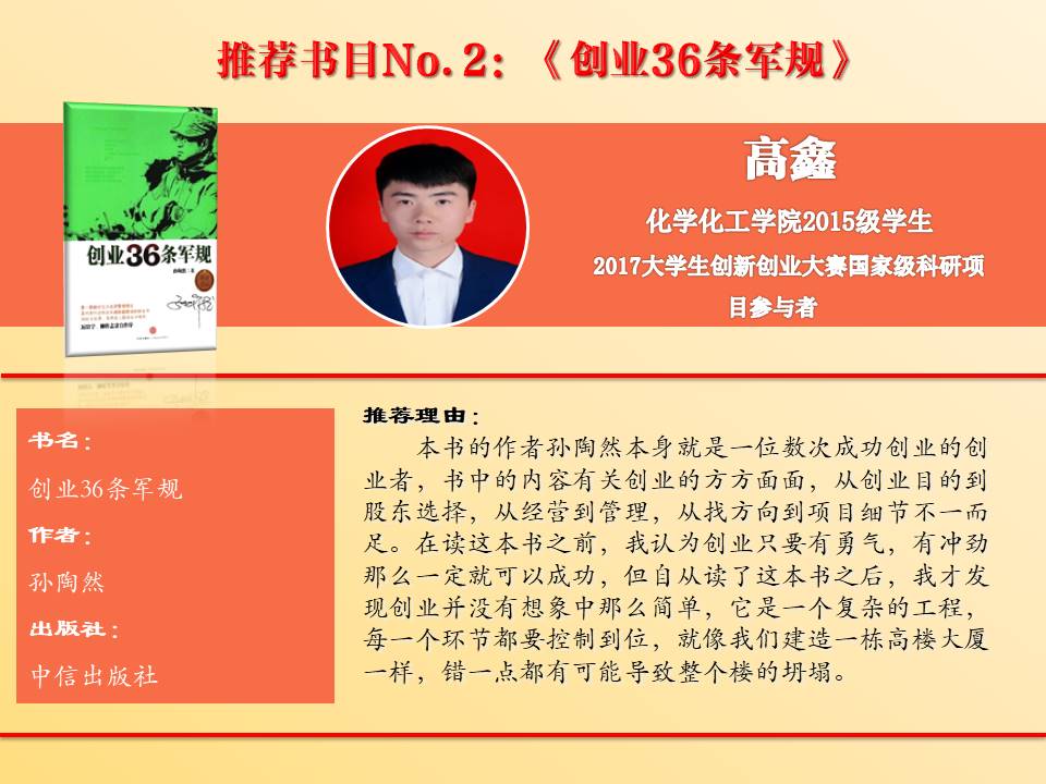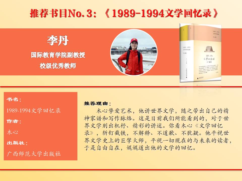 【编者按】为进一步激发全校师生爱读书、会读书、读好书的浓厚兴趣,努力营造书香校园的良好氛围,校党委宣传部(新闻中心)今年继续策划推出荐书专题活动。本期“师长荐书”和“学长学姐荐书”专题活动,特别邀请8位教师和8位同学精心推荐图书16本,在学校官方网站、官微等平台同步推送,敬请关注。