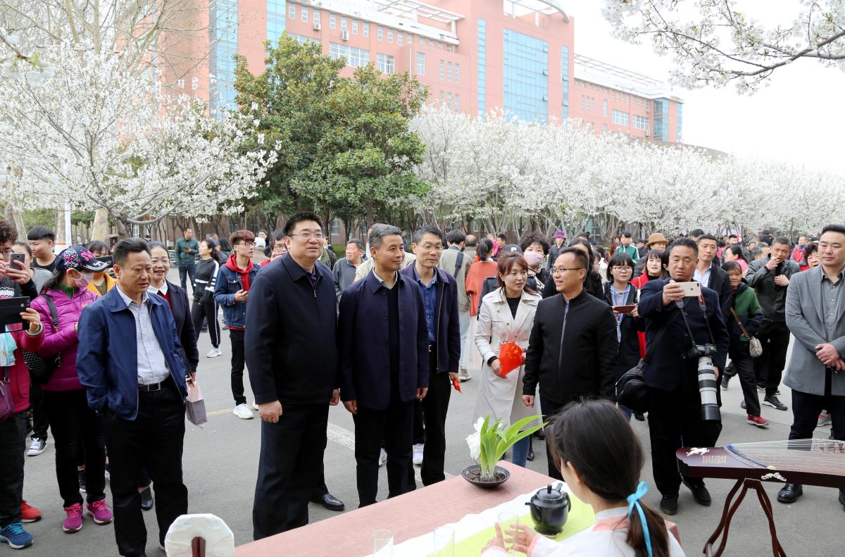 党委副书记孙海在开幕式上致辞。他说,bet36体育在线是一所开放和包容的大学,这里的樱花沾染着校园独特的书香气质和人文情怀,代表着全校教职工的仁爱高洁和莘莘学子的青春活力。希望大家在观赏樱花美景同时,感受学术之美、人文之美,感悟传统文化和区域文化魅力,共同参与到文明校园建设之中。
