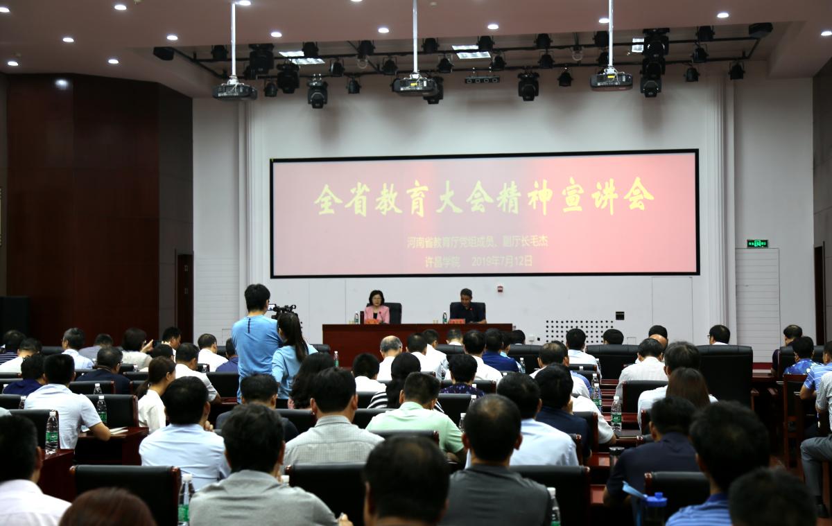 7月12日,许昌、漯河片区全省教育大会精神宣讲会在bet36体育在线学术会议中心召开。省教育厅党组成员、副厅长毛杰作专题宣讲报告,报告会由院长岳修峰主持。