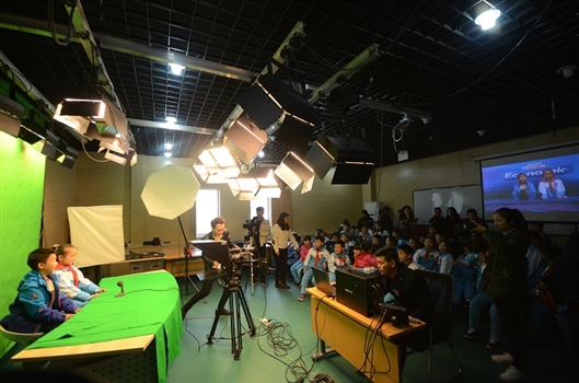 与“小书虫公益书屋”异曲同工的还有网络电视台师生的影视科普活动。近年来,公共实验中心先后成为河南省全媒体科普传播中心创作基地、河南省科普教育基地、许昌市的影视科普教育基地,每逢周末,总有许多中小学生有组织地前来参观体验。“大手拉小手”,网络电视台学生担任科普服务志愿者,带领中小学生开展科普微电影、手机摄影讲座、主播上镜体验、后期编辑软件教学体验和无人机实操演示、小主播上镜等丰富多彩的活动,每年接待人数超过5000人次。