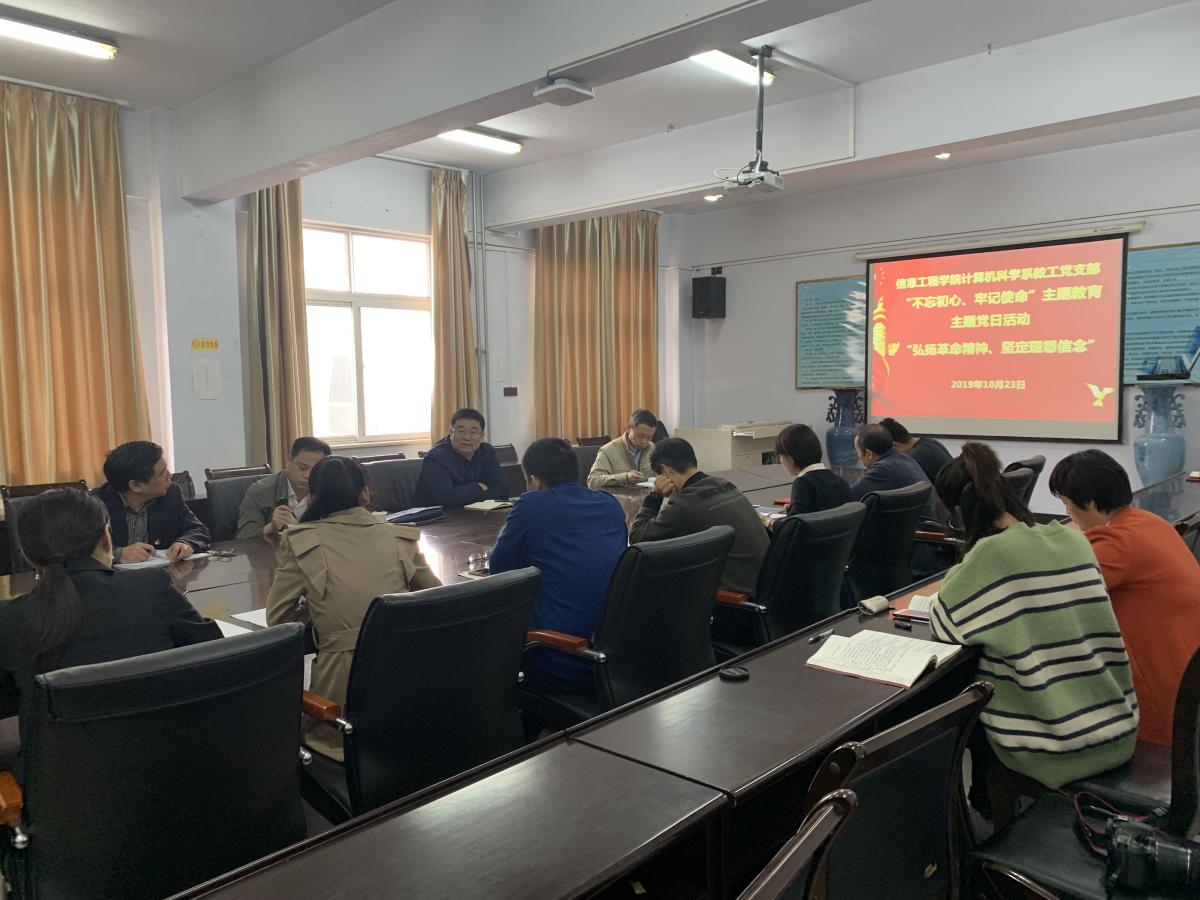 10月23日上午,党委书记闫纪建来到信息工程学院,参加了计算机科学系教工党支部开展的“不忘初心、牢记使命——弘扬革命精神,坚定理想信念”主题党日活动。