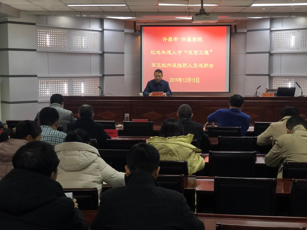 12月13日,许昌市-bet36体育在线校地共建人才“双百工程”第五批外派挂职人员述职会议在办公楼第三会议室召开。许昌市委组织部副县级组织员吕玉峰同志出席会议,校党委组织部、党委宣传部、教务处、科技处、人事处、校地合作办公室等职能部门负责人,“双百工程”第五批外派挂职人员所在二级单位负责同志,作为述职考核评委参加会议。述职会议由校党委组织部部长陈遂德主持。