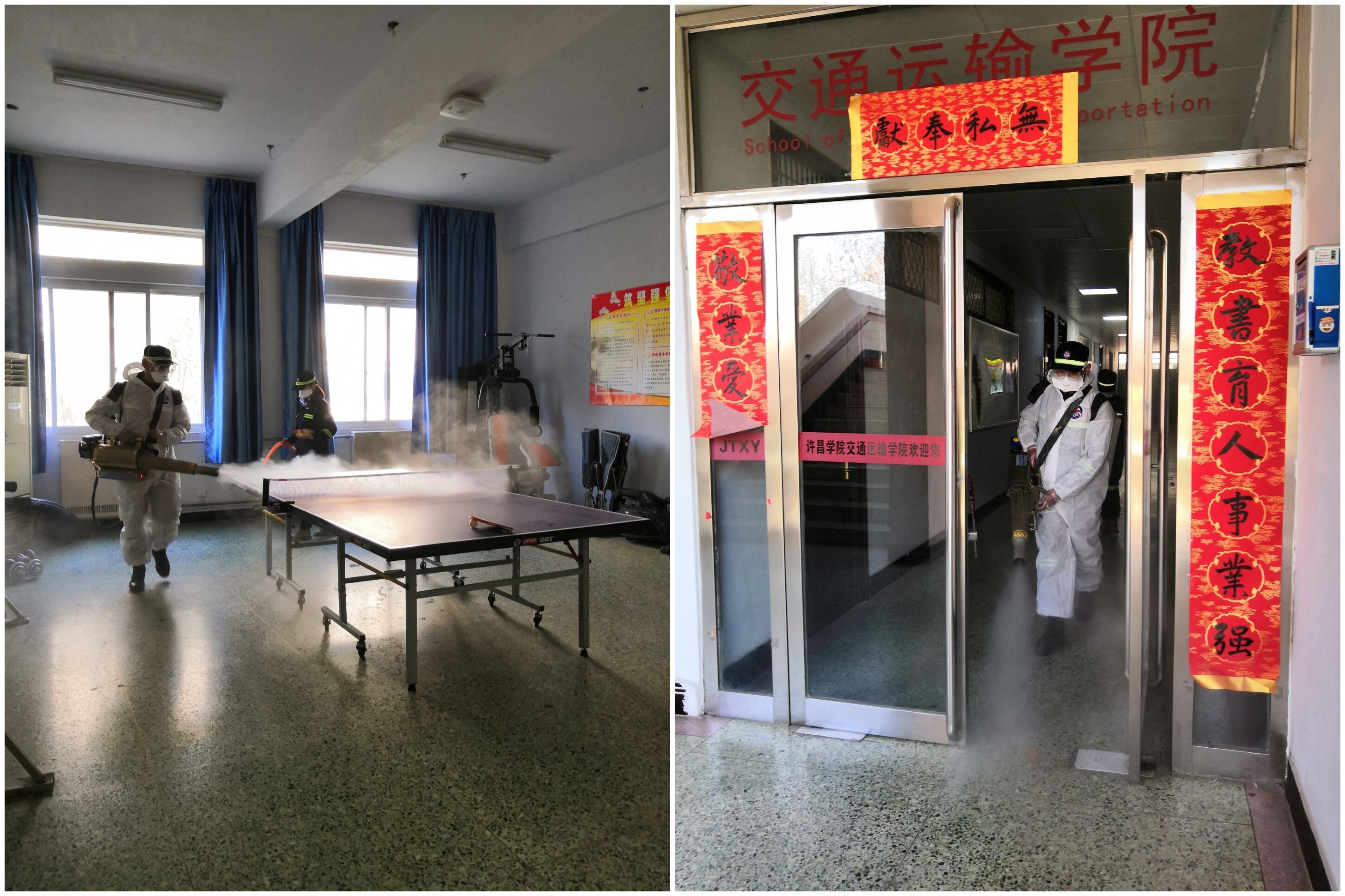 消杀过程中,救援队员们身穿防护服,利用专业设备,严格按照标准化规范作业。一整天的时间里应急救援队员对全校所有办公楼、教学楼、餐厅、15栋学生公寓及部分道路、车棚、垃圾桶等进行了全方位、专业化、无死角的消杀,消毒面积达十万多平方米。bet36体育在线防疫消毒消杀小组成员对消杀现场进行观摩学习。市红十字田豪彬主任和高煜队长分别围绕消杀设备的使用、药物配比、个人防护、重点部位消杀及注意事项进行了培训讲解。
